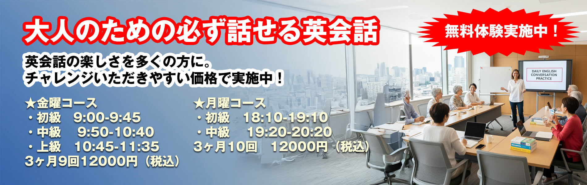 「大人のための必ず話せる英会話」生徒募集中!New!!