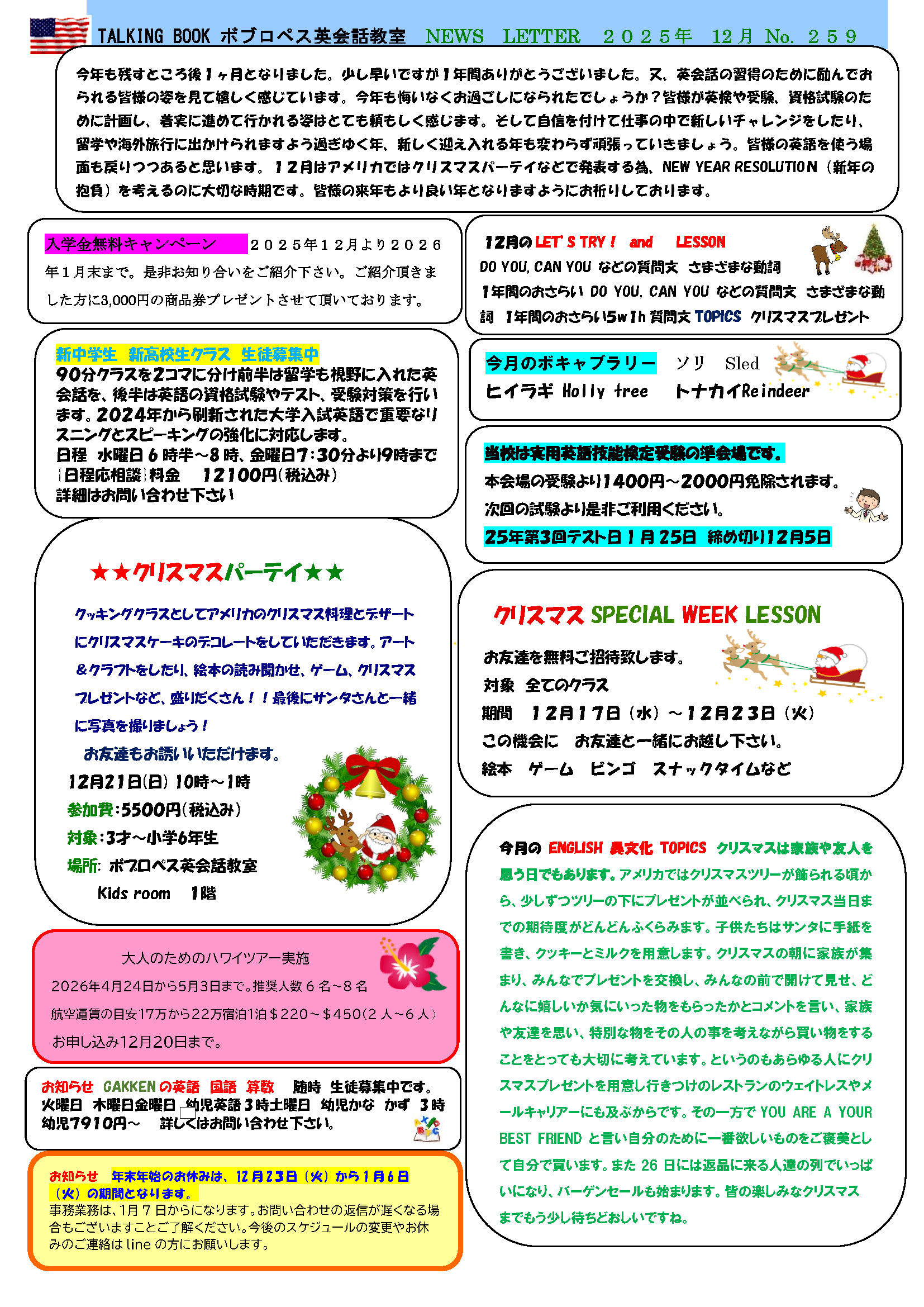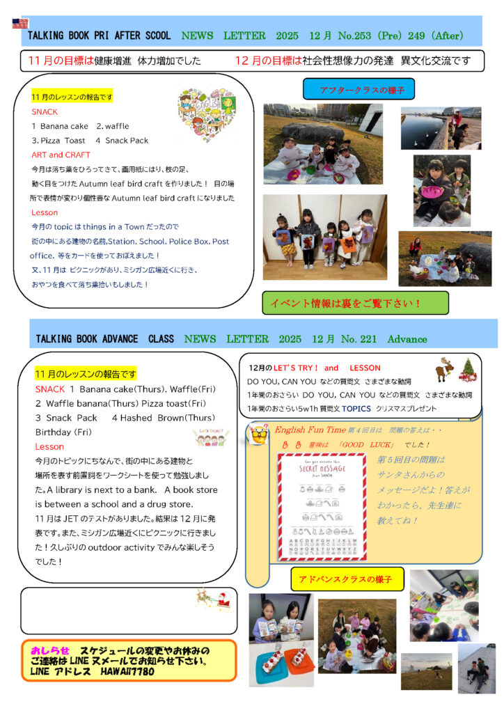 NEWS LETTER 2025年12月 No.259/No.253(Pre)/No.249(After)