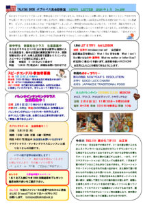 2025年12月11日 / 最終更新日 : 2025年12月11日 ボブ ロペス ニュースレター NEWS LETTER 2025年12月 No.259/No.253(Pre)/No.249(After) 表面レギュラー、裏面プリ、アフター、アドヴァンスクラスと、全クラスのニュースレターが1枚になりました。皆様にお届けしたい情報や子供クラスの日々のレッスン内容等をお伝えしていきます。 PDFダウンロード