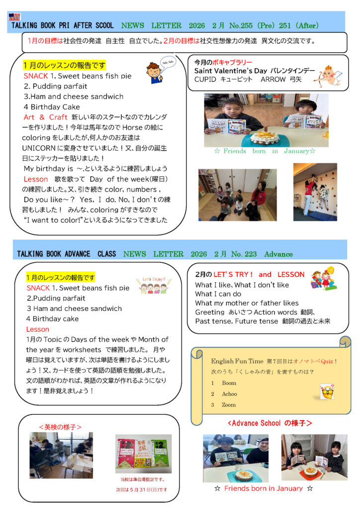 NEWS LETTER 2026年2月 No.261/No.255(Pre)/No.251(After)